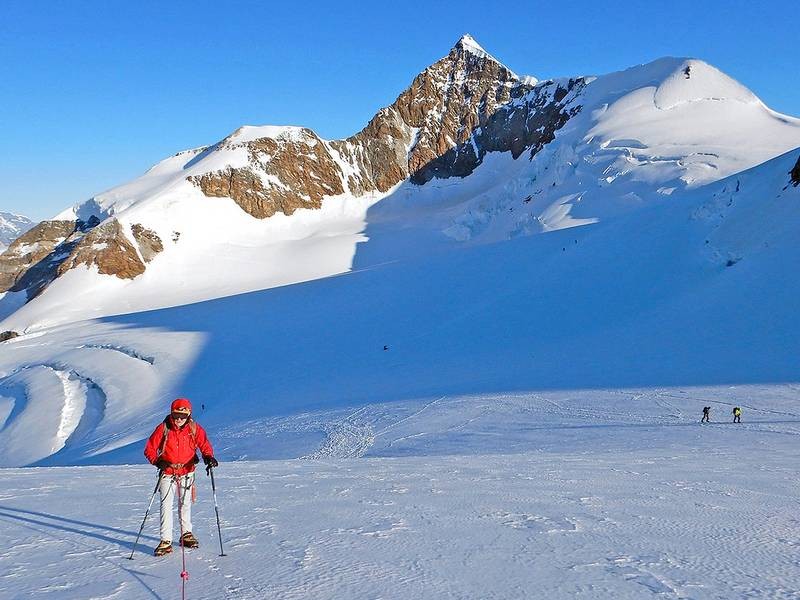 Ascension du 4e sommet le plus haut des Alpes sur 4 jours pour une meilleure acclimatation. Panoramas fantastiques sur toutes les Alpes.